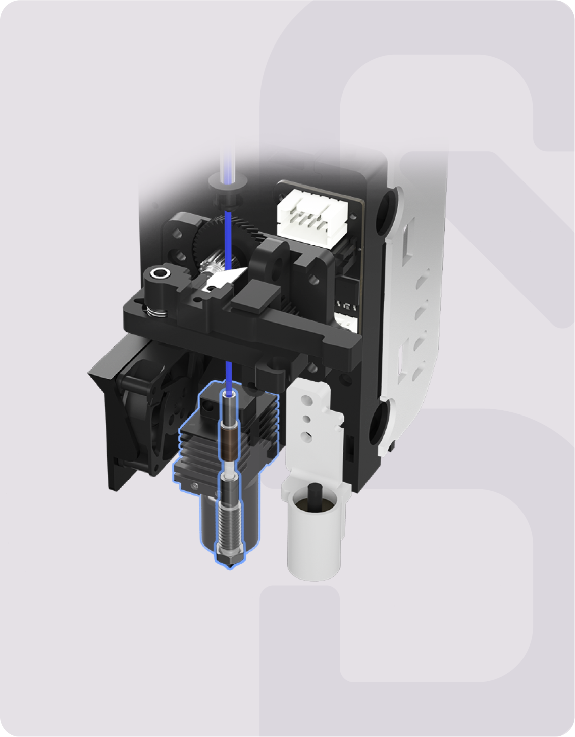 Second-gen 80W bimetal hotend for advanced filament handling.