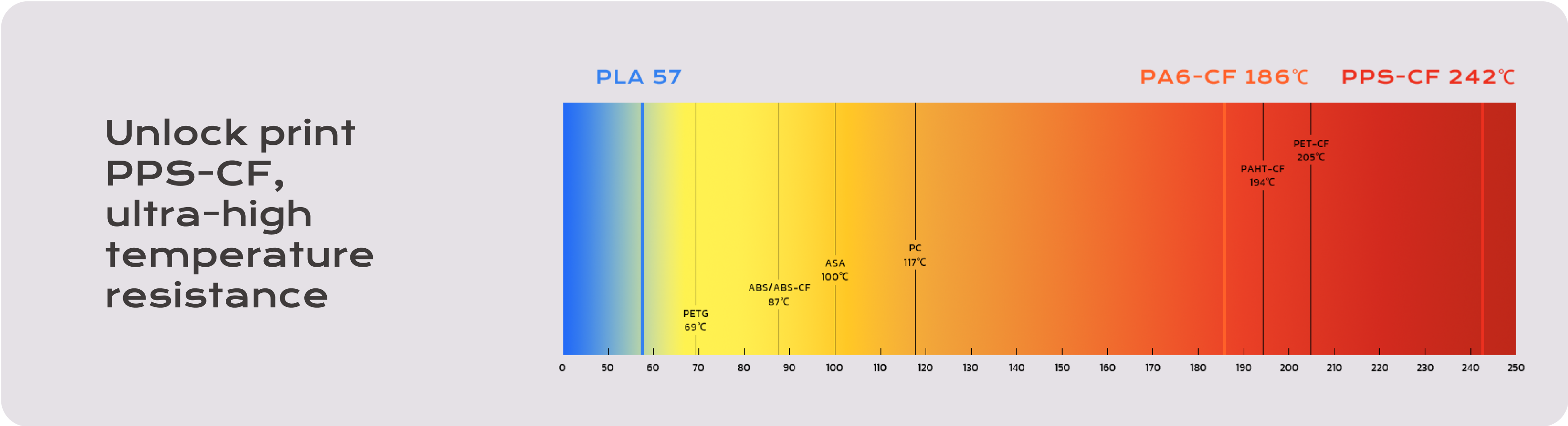 2. High-Temperature Filaments: ABS, ASA, PC, PA, PA-CF/GF, PET-CF/GF, PPA-CF/GF, PPS-CF, etc. We recommend using QIDI's high-quality filaments for optimal printing results.